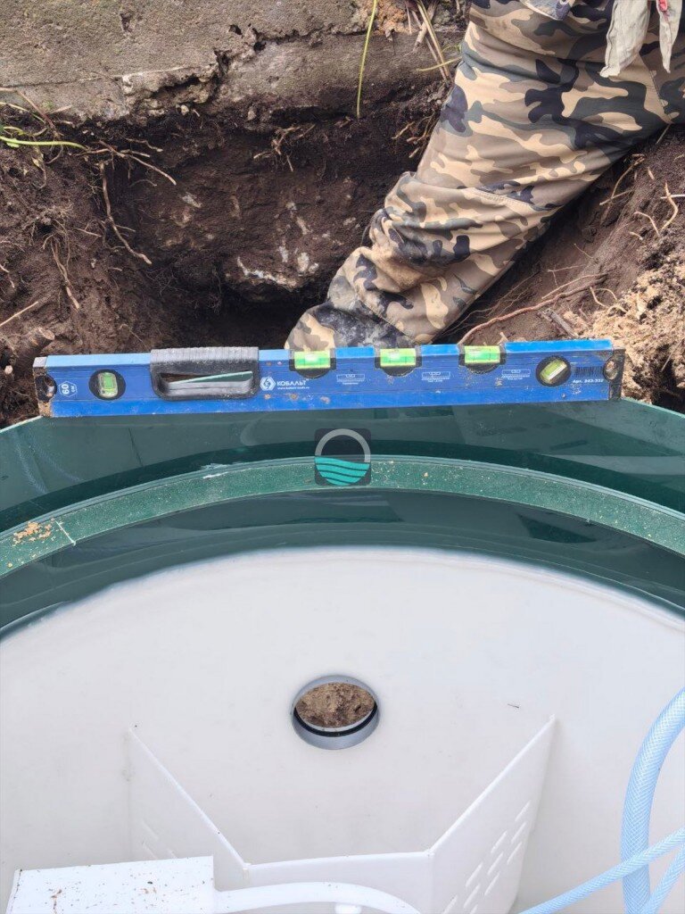 - Подключение входного и выходного трубопровода, герметизация и проверка уклонов.