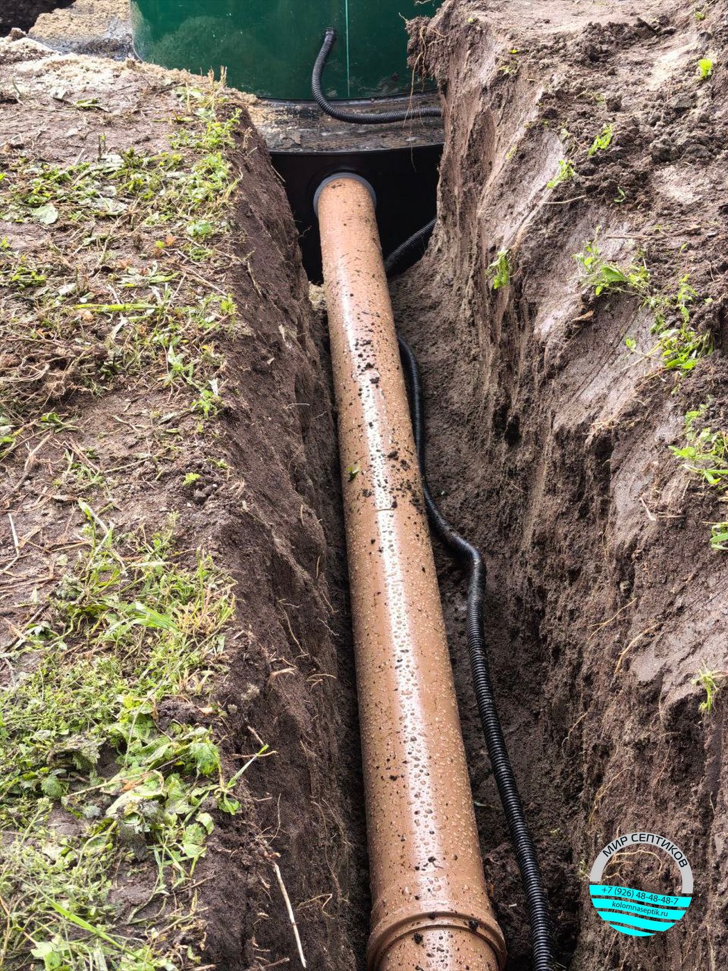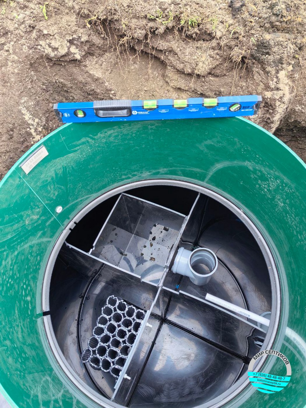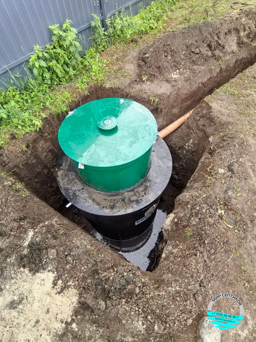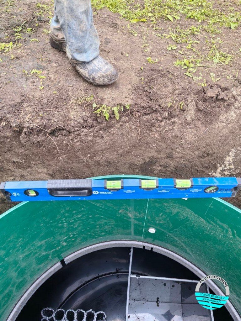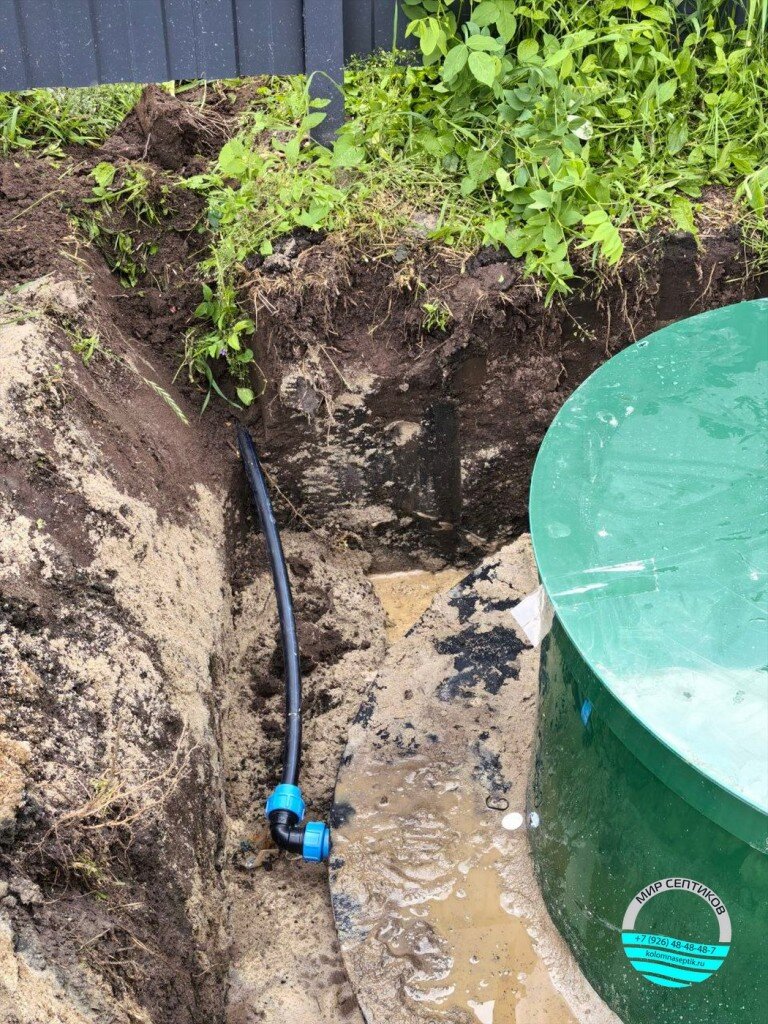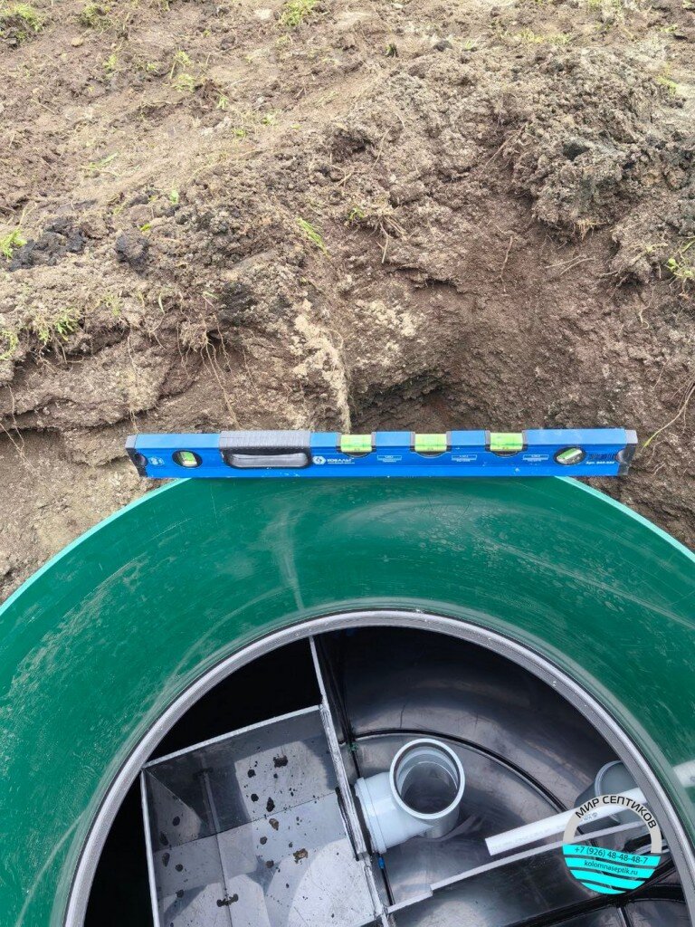 Септик отличается увеличенной длиной корпуса, что позволяет увеличить объем переработки стоков и повысить срок эксплуатации без необходимости частого обслуживания. Монтаж проведен с соблюдением всех технических норм и требований, что гарантирует долговечность и экологическую безопасность объекта.