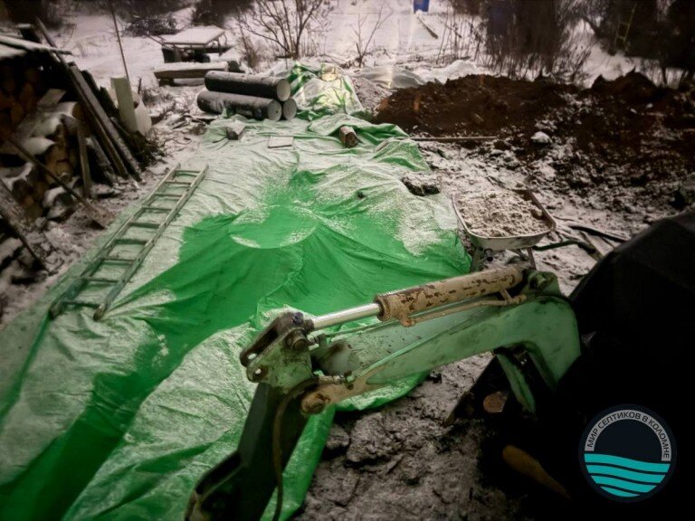 Еще одна успешная установка септика зимой.