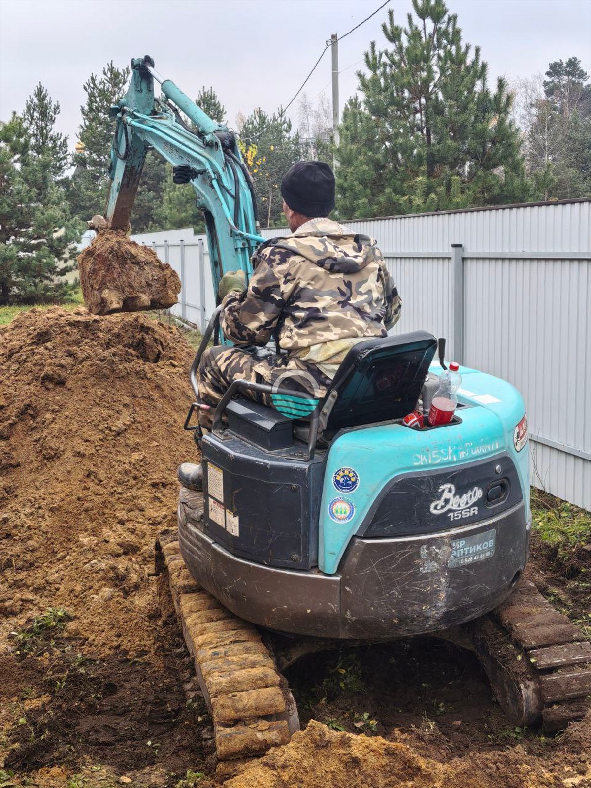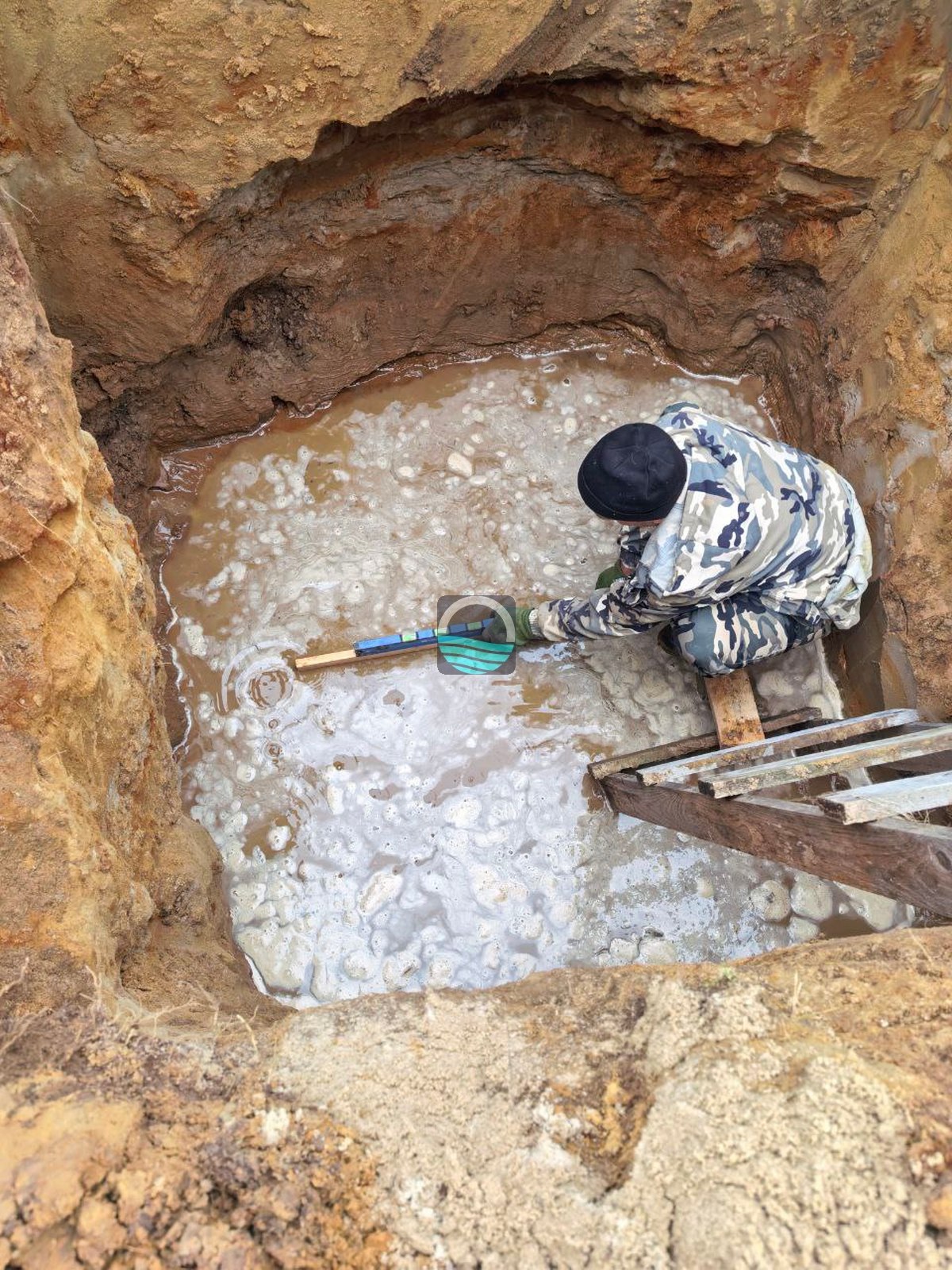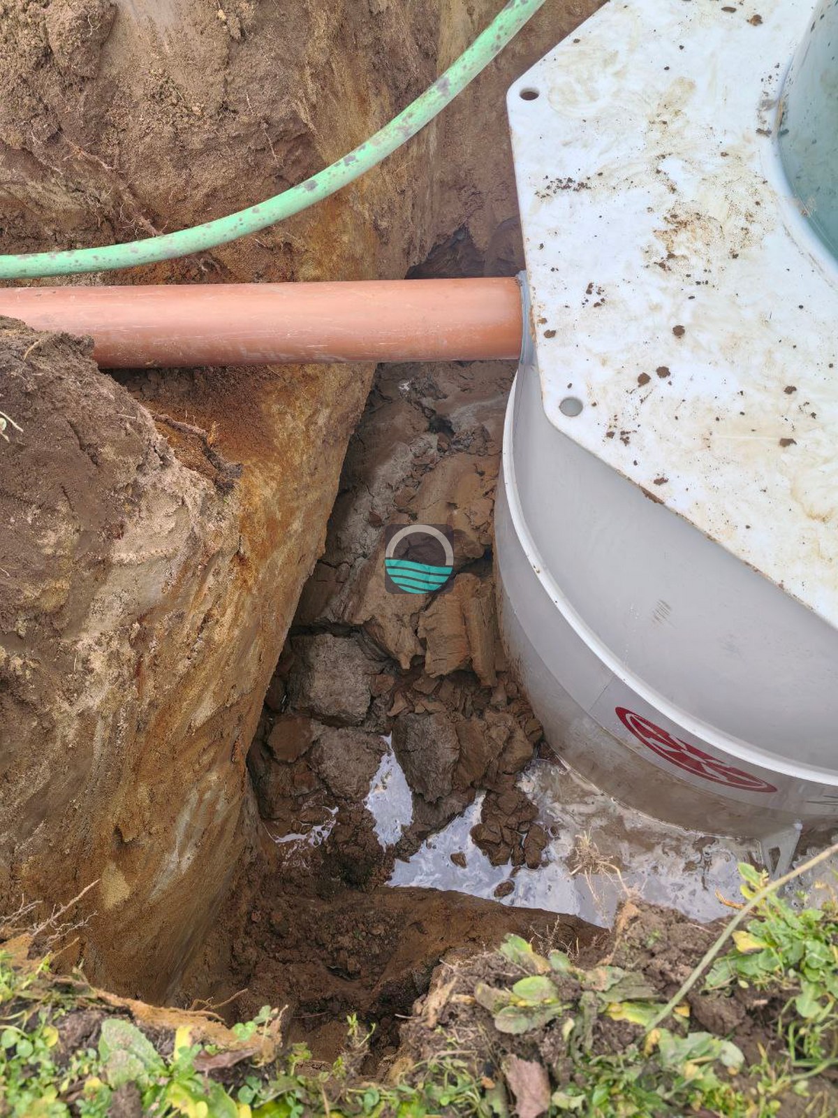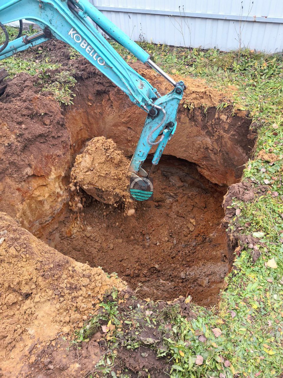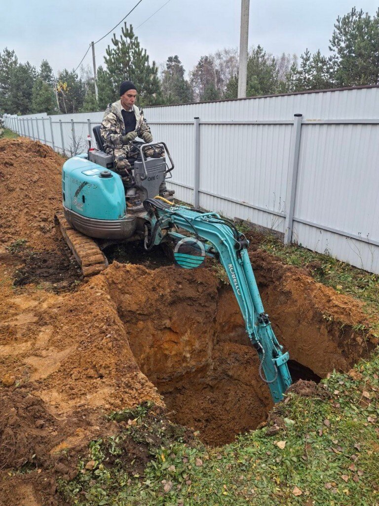 - Выемка котлована под блоки септика с учётом глубины залегания коммуникаций.