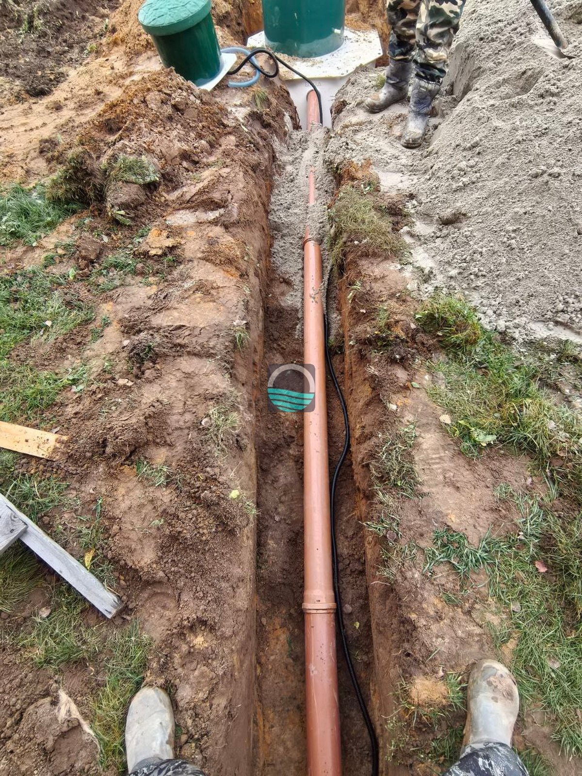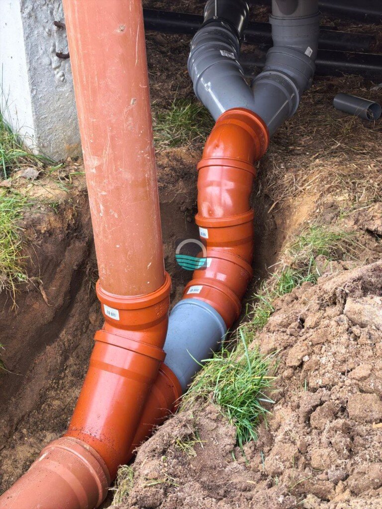 - Прокладка напорного трубопровода и монтаж насосной станции для принудительной подачи стоков.