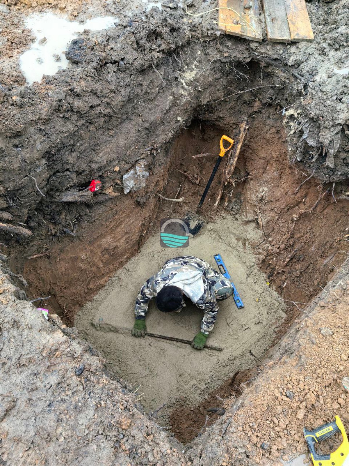 - выемка котлована по размерам емкости